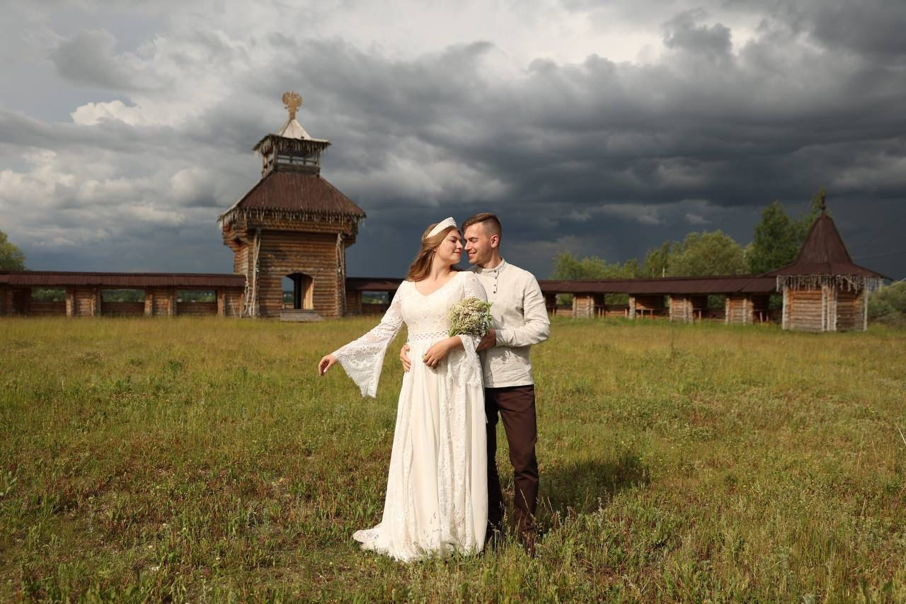 Локации — деревенская улица, поле, луга, бревенчатый дом с резными наличниками. Такую фотосессию можно провести на территории Коломенского или Измайлово.